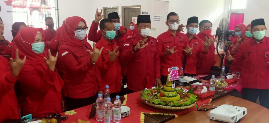 OGAN KOMERING ILIR I KABARINTI.COM I Dewan Pimpinan Cabang (DPC) Partai Demokrasi Indonesia Perjuangan (PDI Perjuangan) Kabupaten Ogan Komering Ilir (OKI) merayakan HUT ke-48 pada Minggu (10/1/2021). Perayaan ulang tahun kali ini berbeda dari tahun-tahun sebelumnya, karena masih dalam suasana pandemi Covid-19 sehingga dilaksanakan dengan protokol kesehatan yang ketat.