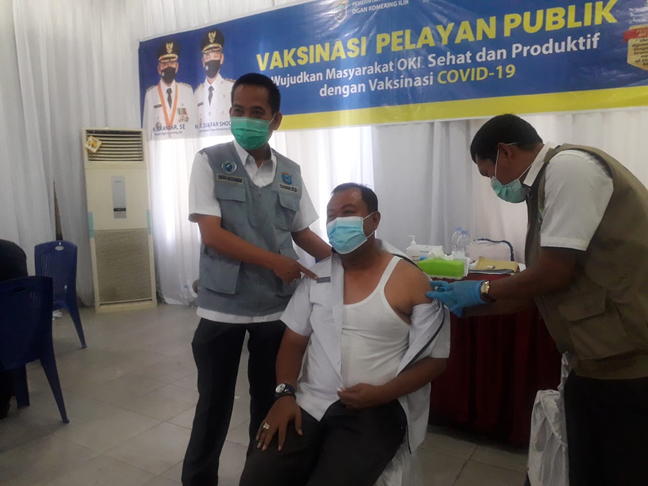Kepala Dinas Kesehatan OKI Iwan Setiawan SKM,M.Kes mengungkapkan untuk tidak takut divaksinasi dan hal tersebut dapat dilihat dan silahkan bertanya pada yang telah divaksinasi seperti apa rasanya saat divaksinasi”,ujar iwan pada sela-sela kesibukannya.