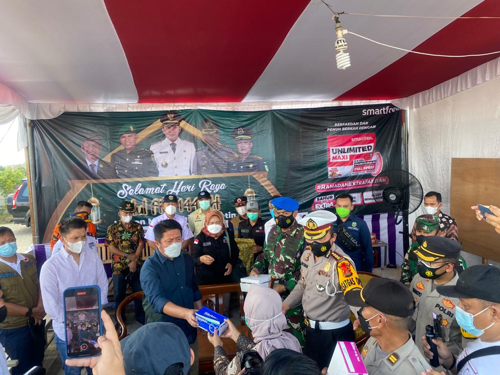 OGAN ILIR I KABARINTI.COM I Menjelang hari raya Idul Fitri 1442 Hijriyah, Gubernur Sumatera Selatan (Sumsel) Herman Deru, meninjau langsung pos penyekatan arus mudik di gerbang Tol Keramasan, pada Sabtu (8/5/2021).