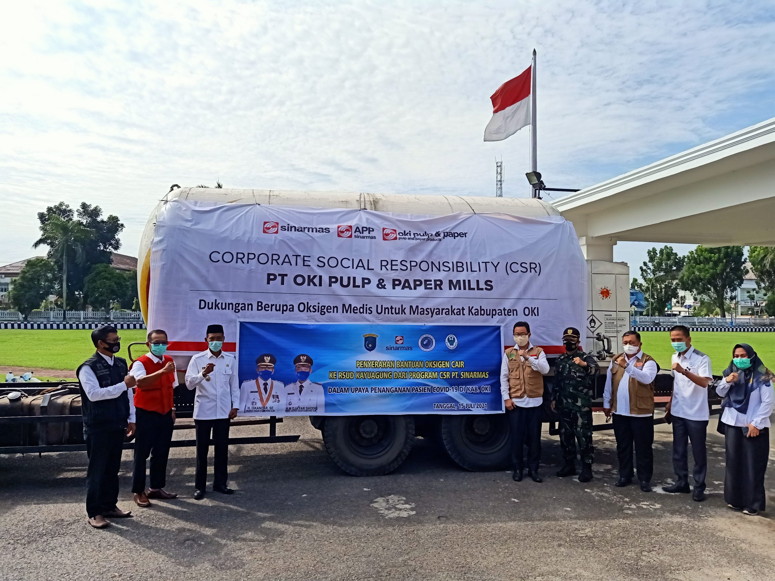OGAN KOMERING ILIR I KABARINTI.COM I PT. OKI Pulp and Paper Mills (Sinarmas Group) bantu Pemerintah Kabupaten (Pemkab) Ogan Komering Ilir (OKI) oksigen liquid sebanyak 15000 liter melalui RSUD Kayuagung dari dana CSR untuk memenuhi kebutuhan oksigen medis bagi perawatan pasien COVID-19.