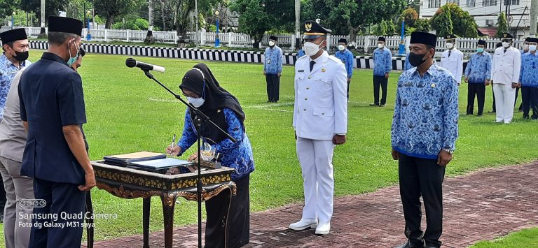 OGAN KOMERING ILIR I KABARINTI.COM I Wakil Bupati (Wabup) OKI HM Djafar Shodiq melantik 136 orang pejabat dalam jajaran Pemerintah Kabupaten (Pemkab) Ogan Komering Ilir (OKI), di Halaman Kantor Pemkab setempat, Jumat (25/2/2022).
