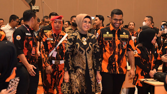 PALEMBANG I KABARINTI.COM I Ketua DPRD Provinsi Sumatera Selatan Hj. RA. Anita Noeringhati SH MH hadiri pembukaan musyawarah wilayah (muswil) II Satuan Siswa, Pelajar, dan Mahasiswa (SAPMA) Pemuda Pancasila Sumsel di Ballroom Hotel Novotel, Palembang, Selasa (23/8/2022).