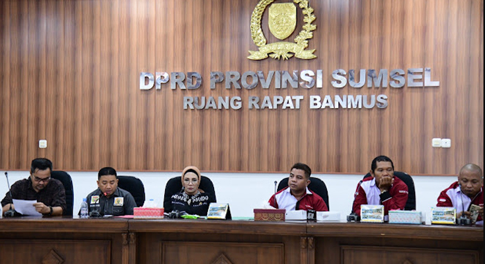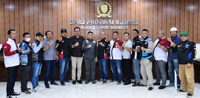 PALEMBANG I KABARINTI.COM I Ketua DPRD Provinsi Sumatera Selatan Hj. RA. Anita Noeringhati SH MH bersama Wakil Ketua Komisi V Mgs. H. Syaiful Padli ST MM dan Sekretaris Komisi V H. David Hadrianto Aljufri SH menerima audiensi dari Koalisi Online Palembang Kita Untuk Semua terkait dampak kenaikan BBM terhadap ojek online, bertempat di ruang rapat Banmus DPRD Sumsel, Senin (19/9/2022).