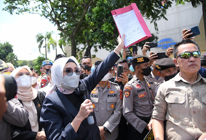 Kepada massa aksi, Anita Noeringhati berkomitmen untuk terus berkomitmen memperjuangkan tuntutan masyarakat Sumsel yang disuarakan para mahasiswa.