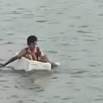 OGAN KOMERING ILIR I KABARINTI.COM I Sebuah video yang memperlihatkan seorang bocah Sekolah Dasar (SD) mendayung styrofoam (busa gabus) menyeberangi sungai viral